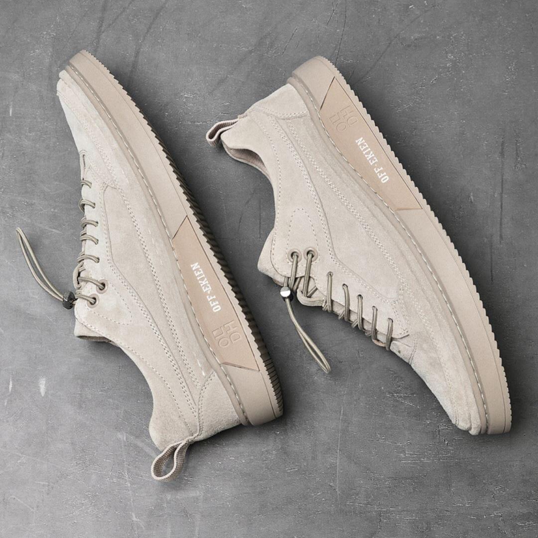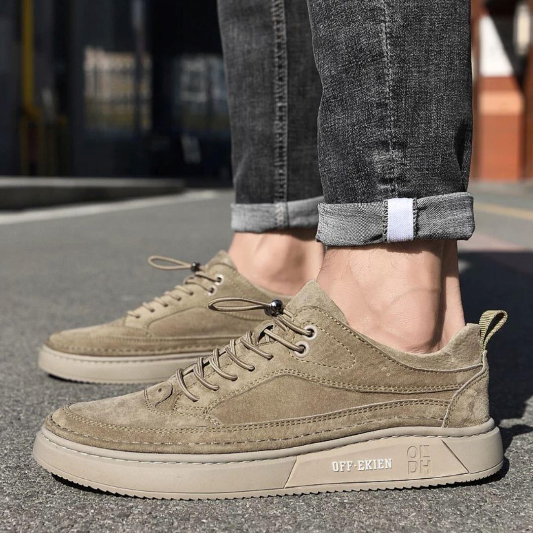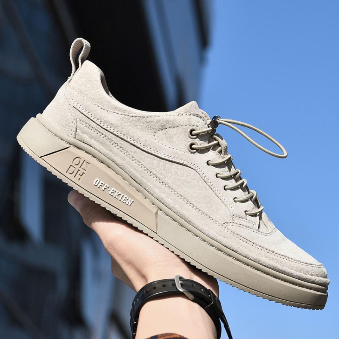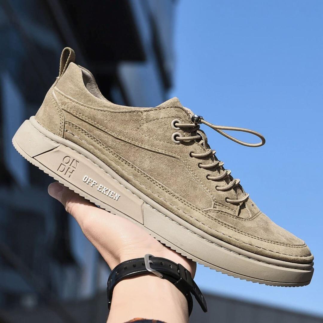 Feito em couro premium para garantir a máxima qualidade aos seus pés e proporcionar um caminhar mais confortável e sem dores. O tênis de camurça masculino possui um corpo respirável para bloquear a proliferação de bactérias e não causar maus odores.